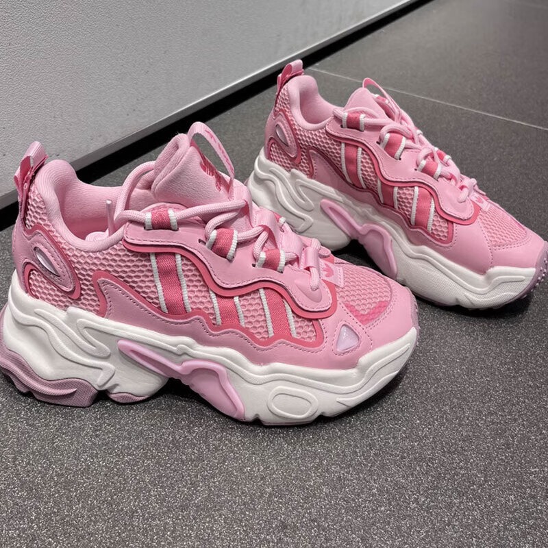 オズテミスは、 見た目のインパクトと実用性を両立したモデル。 ✔ ファブリック素材で軽量な履き心地 ✔ クッション性のあるソールで足への負担を軽減 ✔ 安定感のあるチャンキーシルエット ✔ フェミニンすぎないピンクカラーで取り入れやすい 長時間歩いても疲れにくく、 普段使いにも安心して履けるのが特徴です。