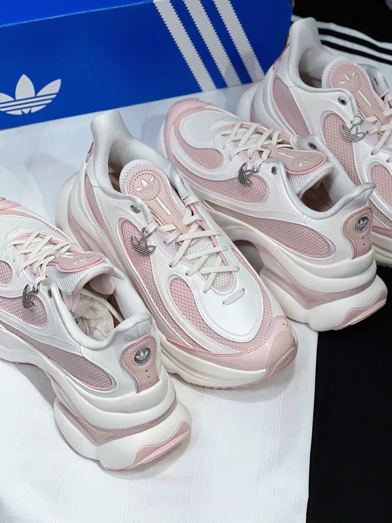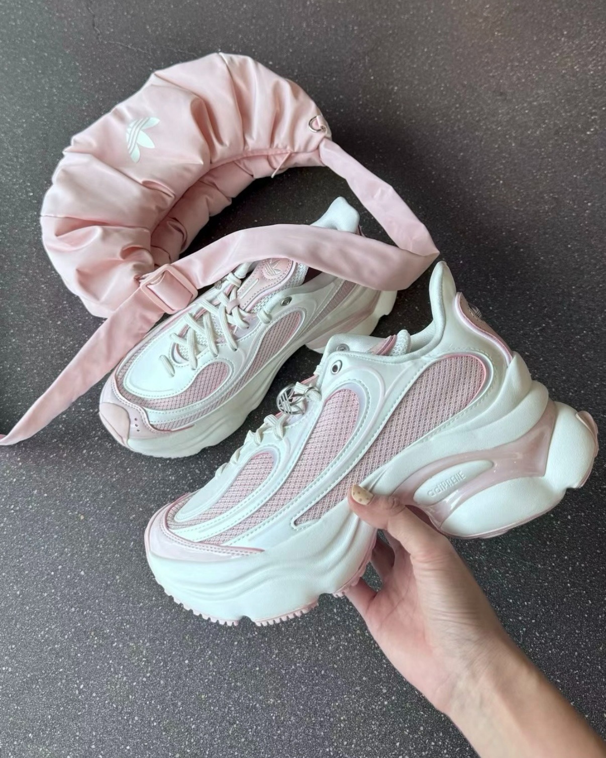 シンプルなコーデに、 ほんの少しだけ彩りを加えたい。 そんなときにちょうどいいのが、 adidas Originals オズベンウズ(OZBENWOODS)カジュアルシューズです。 淡いピンクとホワイトの組み合わせは、 主張しすぎず、 足元にやさしい印象をプラスしてくれます。