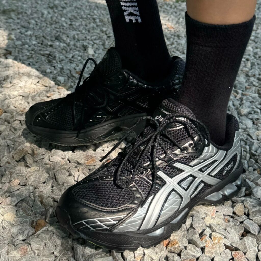 ASICS GEL-NIMBUS 10.1は、ランニング由来の機能美をライフスタイルへ落とし込んだ一足。最大の特長は、足全体を包み込むようなクッション感と、歩行時のブレを抑える安定設計です。カラーはLiquid Black / Silver。モノトーン基調にシルバーのアクセントが映え、コーディネートを選びません。