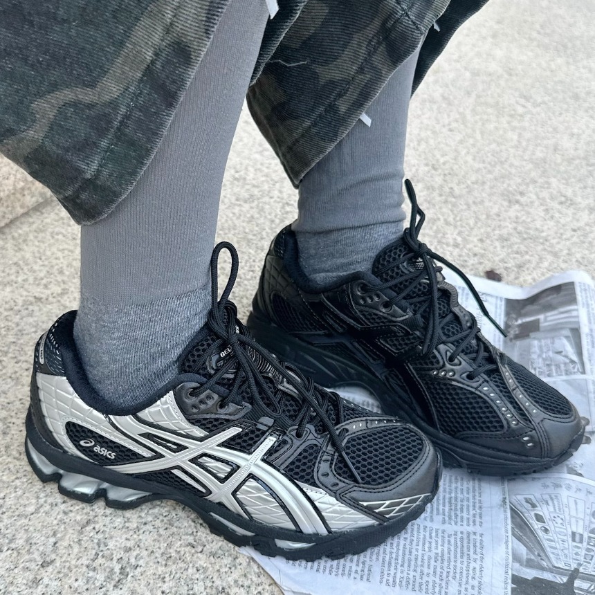 ASICS GEL-NIMBUS 10.1は、ランニング由来の機能美をライフスタイルへ落とし込んだ一足。最大の特長は、足全体を包み込むようなクッション感と、歩行時のブレを抑える安定設計です。カラーはLiquid Black / Silver。モノトーン基調にシルバーのアクセントが映え、コーディネートを選びません。